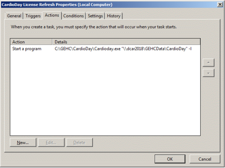 Note: These steps should only be performed on the CardioDay server, NOT the CardioDay client(s).The Licensing chapter of the CardioDay 2.5 Installation and Field Service Manual has instructions for setting up a Windows scheduled task to prevent CardioDay license expiration. This PSDB document serves as a supplement to the information contained in the manual.
